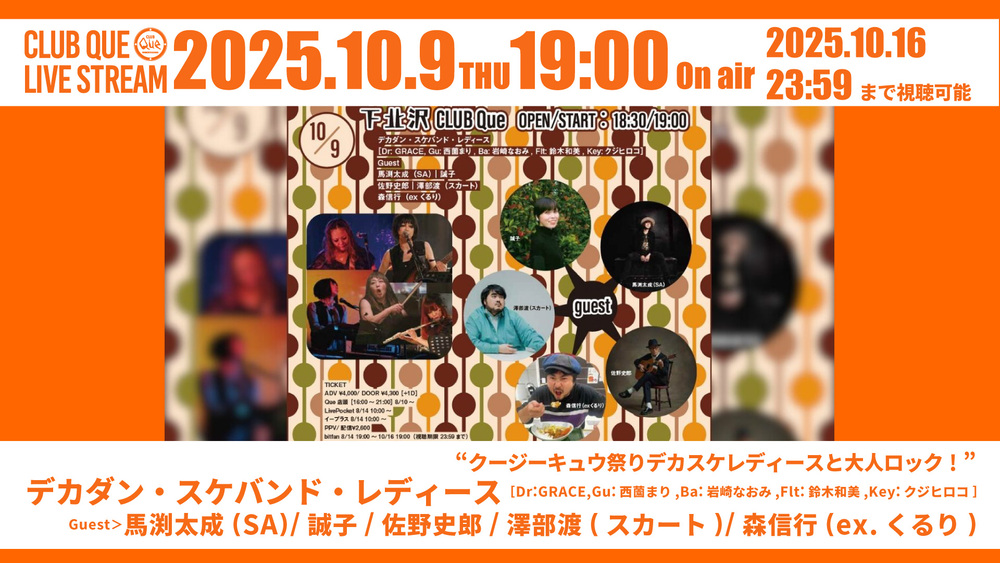 2025.10.09(THU) デカダン・スケバンド・レディース 10/9 THU Guest 下北沢 CLUB Que LIVE Streaming Channel フォロー URLをコピーする 報告する