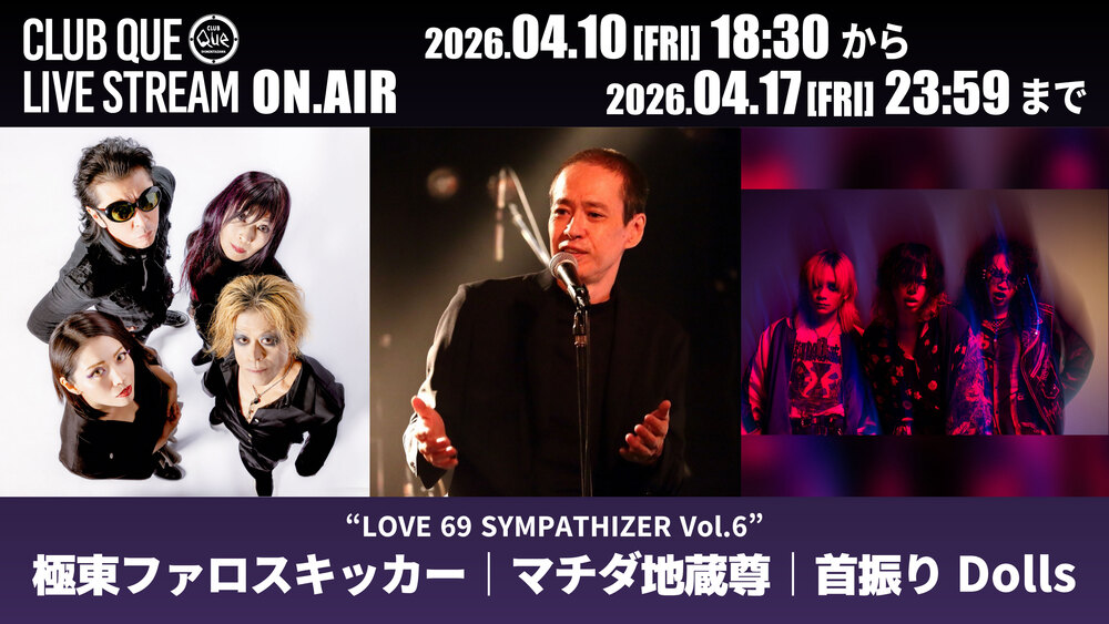 2026.04.10(FRI) 極東ファロスキッカー|マチダ地蔵尊|首振りDolls 4/10 FRI Guest 下北沢 CLUB Que LIVE Streaming Channel フォロー URLをコピーする 報告する